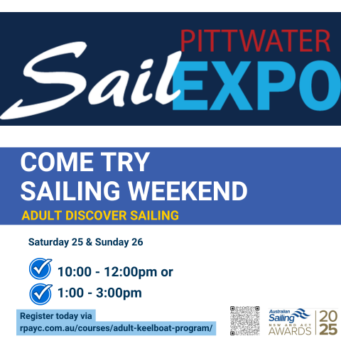 To register, click on the button and select a date. You will need an Australian Sailing number. For those new to sailing, you can apply for your Australian Sailing number, as part of the registration process for a Discover Sailing at RPAYC.