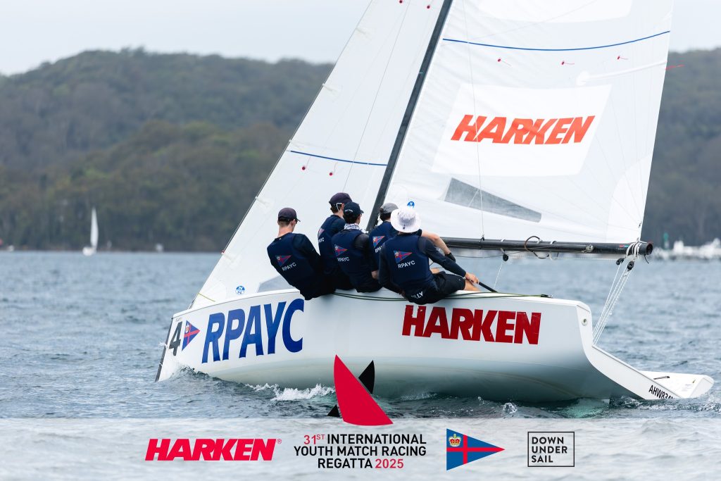 Day 1 of the 2025 Harken International Youth Match Racing Championship delivered a full spectrum of match-racing drama on Pittwater, with fluctuating breeze, precision pre-starts, and hard-fought tactical duels defining the opening exchanges. A steady south-easterly built throughout the day into a 10–18-knot southerly, creating superb racing conditions and multiple opportunities for teams to demonstrate composure under pressure.