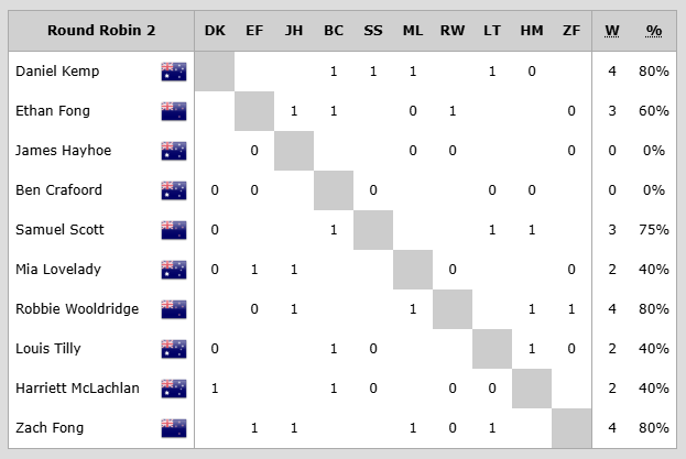 Round Robin 2 produced some tightly contested matches across all flights, with several standout performances from the Fong brothers. Ethan Fong (RNZYS) secured a thrilling win over Robbie Wooldridge (RNZYS) in F14 M1, managing to recover and clear a penalty just before the finish to take the match. Zach Fong (RNZYS) also impressed in F16 M4, narrowly defeating his brother Ethan after a close battle, showing strong tactics and speed through the shifts. Harriett McLachlan (RSYS) continued her winning form with upsetting victories over Daniel Kemp (RPAYC) and Ben Crafoord (CYCA), demonstrating consistency and smart course management. Meanwhile, Daniel Kemp held off Mia Lovelady in F18 M4, maintaining control despite late pressure from his opponent.