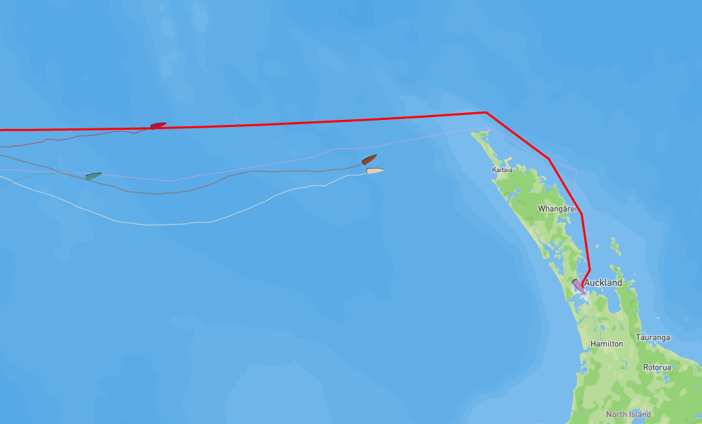 Behind them, Cooloola, a Swan 48 owned by Octogenarian Alan Hill, is making good progress towards the finish line off Royal Akarana Yacht Club, co-host of the race. She is 70nm adrift of Wings, the later having sailed 505nm of the 1250nm course at 9am.