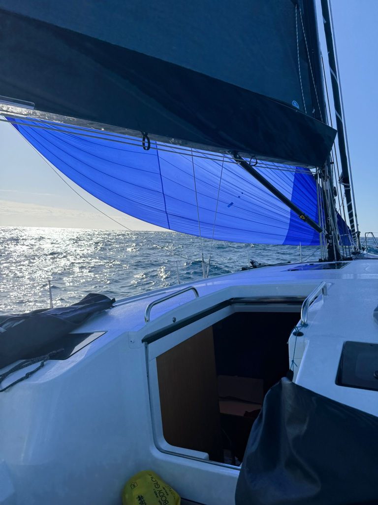 A similar story on Ian Edwards’ Dehler 46, Wings. “We had a bit on last night. It was a very breezy, very dark night, but everyone’s still smiling. Wings is heading east under kite now, cruising with the S5 (spinnaker) now the breeze has abated,” crew member Janease Graham explained.