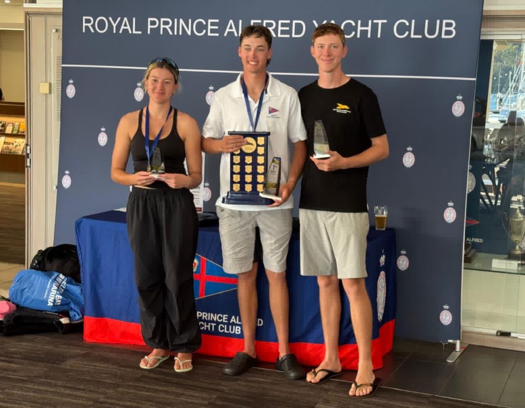 Max Nicholson from the Woollahra Sailing Club was first junior with Jervis Tilly getting fourth overall and first senior.  The podium consisted of Mina Ferguson (also WSC) third overall and first female, Will Troop second overall and Louis Tilly being first youth and taking out his third New South Wales state championship.
